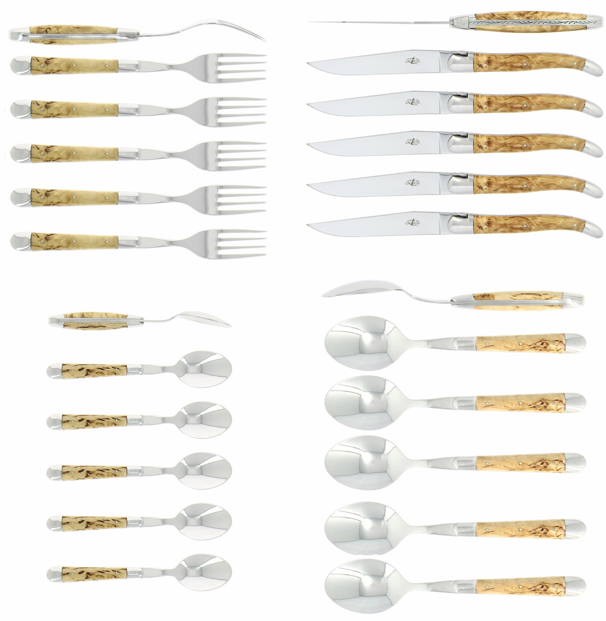 Bestekset 03, Berkenhouten grepen, gepolijst, Tradition - Forge de Laguiole