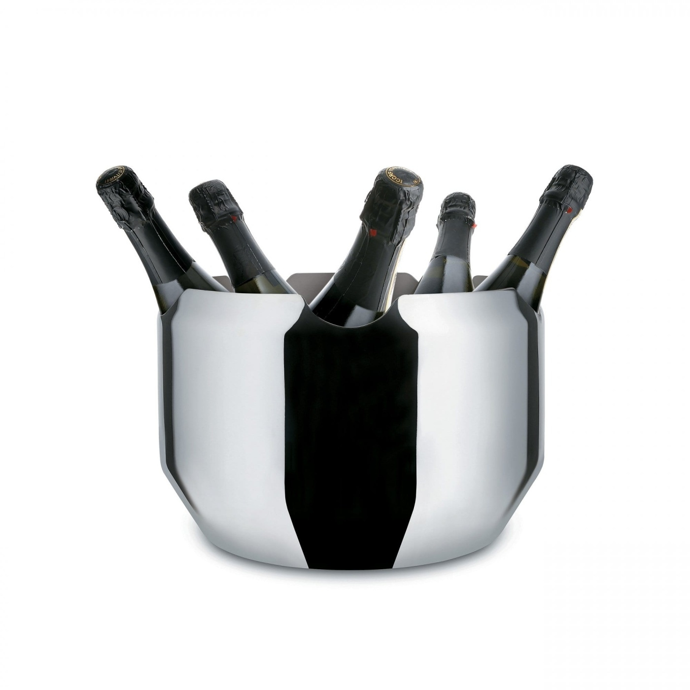 Champagneschaal van roestvrij staal met ruimte voor vijf flessen. Goed ontworpen zoals altijd van Alessi, ontworpen door Giulio Iacchetti.