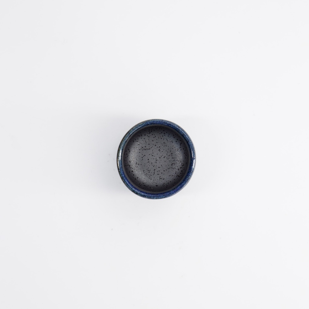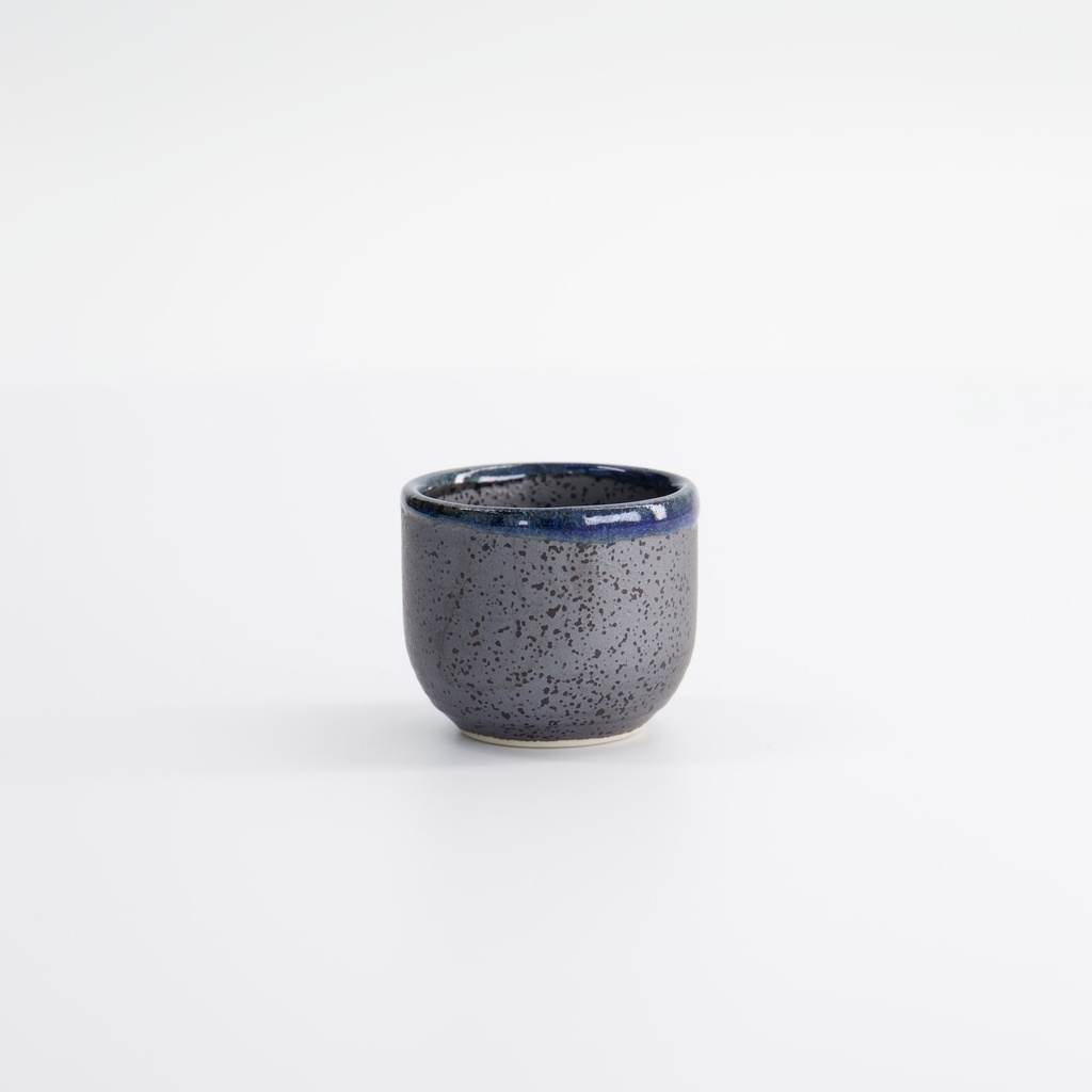 Dit model is gemaakt van keramiek met een diepblauw glazuur dat overgaat in een donkergrijs en zwart gespikkeld oppervlak naar de voet toe. Het verschuift van toon zoals stilstaand water in de schemering, waarbij elke hoek het licht anders weerkaatst. De kleur is niet alleen decoratief, maar speelt ook een praktische rol: blauw glazuur wordt traditioneel gebruikt om sake met een heldere, bijna zilverwitte glans te accentueren - zoals pure junmai of licht gekoelde ginjo.