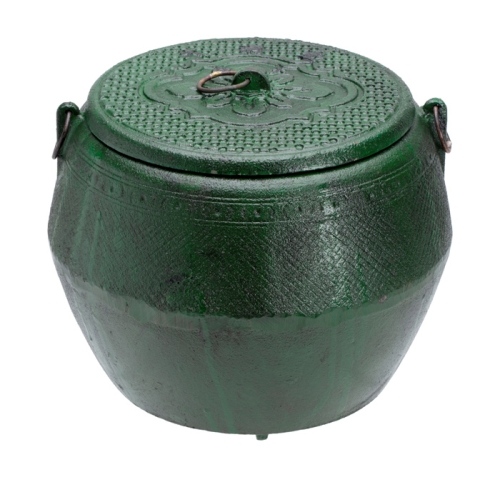 Het oppervlak is geschilderd in donkergroen emaille voor roestbescherming en een klassieke Japanse werkplaatslook.