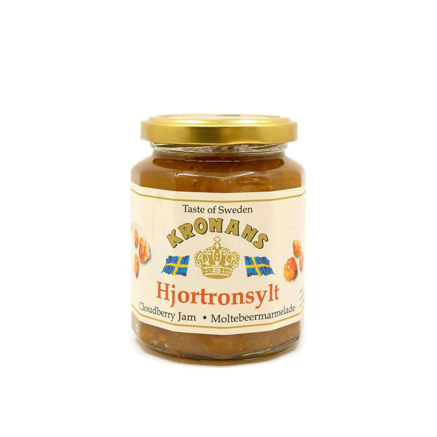 Kronans Kruipbramenjam is een echte Noord-Zweedse klassieker – gemaakt van goudgele, zoetzure Zweedse kruipbramen uit de bossen van Noord-Zweden. Perfect bij pannenkoeken, wafels, pap, yoghurt of als luxe smaakmaker in desserts en bakrecepten.