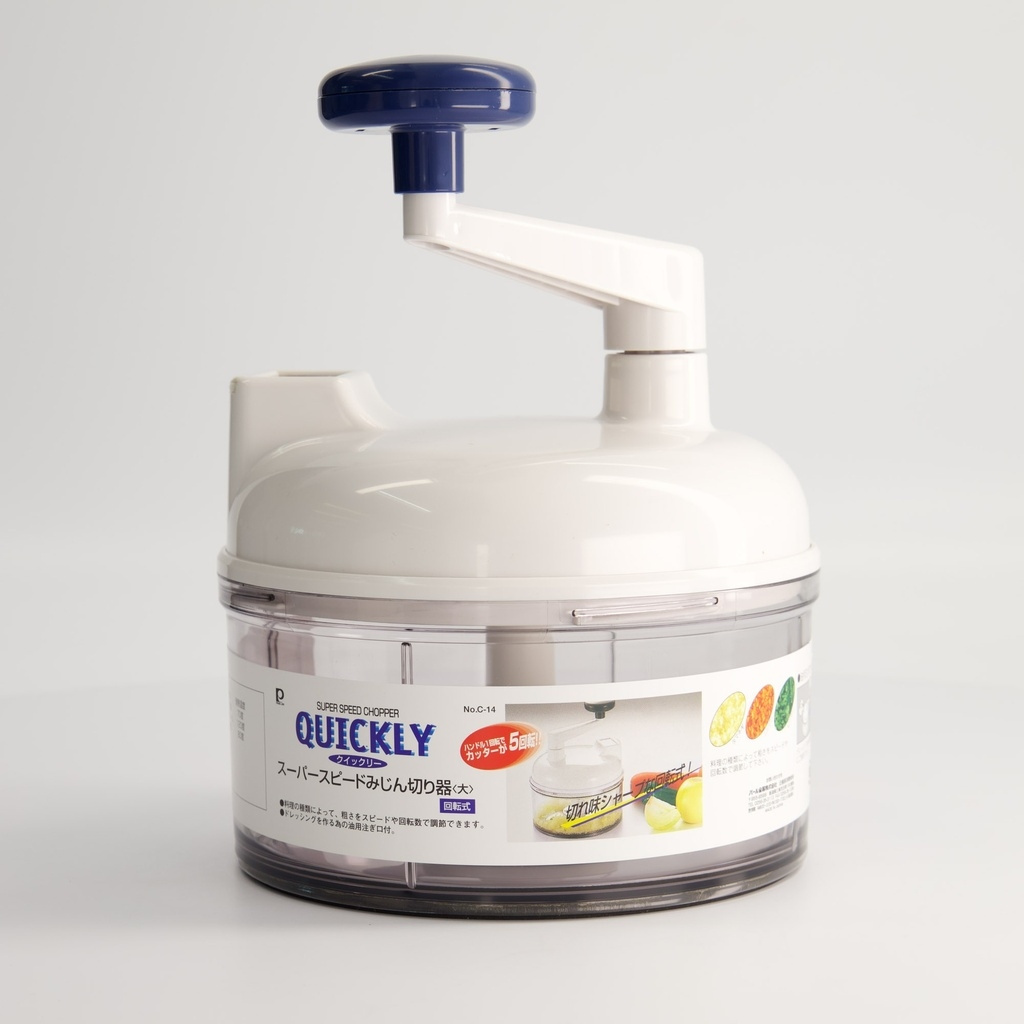 De handmatige Japanse groentehakmolen, mini-hakmolen, is een compact en efficiënt hulpmiddel om snel groenten, kruiden, noten of knoflook te hakken zonder elektriciteit. Met een slinger aangedreven mechanisme en scherpe, roterende roestvrijstalen messen, levert het consistente resultaten en goede controle over de grootte van het haksel - van grof tot zeer fijn, afhankelijk van het aantal omwentelingen.