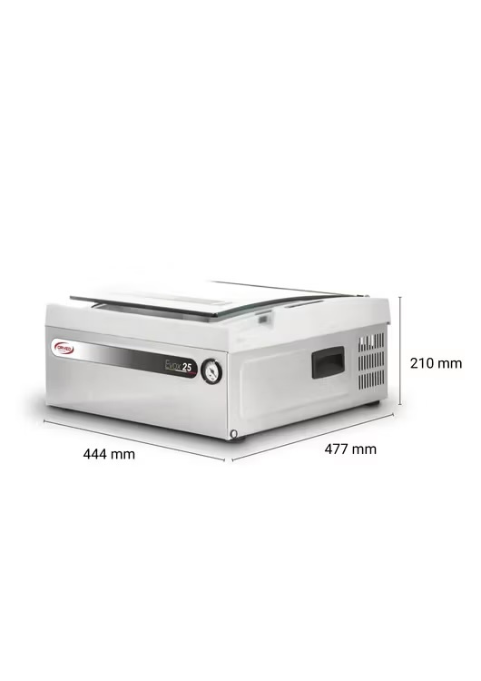 Orved EVOX 25 is een compacte kamer vacuümmachine die in een normale keukenlade past maar toch professionele vacuümkracht levert. Ideaal voor wie thuis efficiënt wil vacumeren zonder dat het aanrecht vol apparaten staat. Het slimme ontwerp zorgt ervoor dat de machine in standaardladen van veel keukenprogramma’s past en toch krachtig genoeg is voor vlees, vloeistoffen, potten en grotere platte verpakkingen.