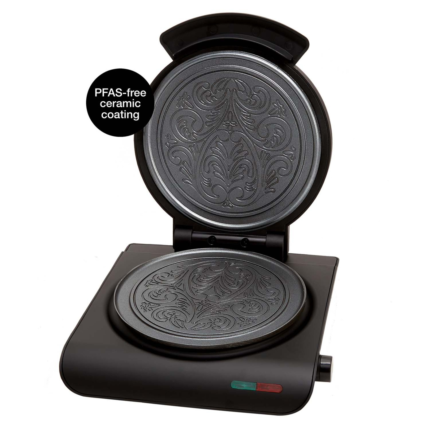 Klop de eieren en suiker tot een poreuze massa. Smelt de boter en voeg deze afwisselend met het water en de bloem toe aan het beslag. Bak dunne wafels in een verwarmd wafelijzer. Rol de wafels over een deegroller terwijl ze nog heet zijn. Als je geen deegroller hebt, kun je de wafels met de hand rollen. Je kunt de wafels ook in kleine dessertschaaltjes vormen.""}"" data-sheets-userformat=""{""2"":769,""3"":{""1"":0},""11"":4,""12"":0}"">Kniepertie strijkijzer van Åviken met een stijlvol ontwerp. Perfect voor het maken van knapperige kniepertie of ijshoorntjes met een leuk patroon. Het kniepertie strijkijzer heeft platen van dik gegoten aluminium met antiaanbaklaag. Het patroon is afkomstig uit Hallingdal in Noorwegen rond 1750.