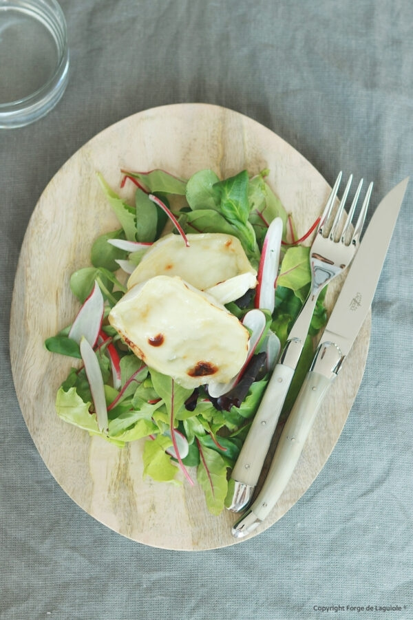 Mes en vork, handvat licht hoorn, gepolijst, Tradition - Forge de Laguiole