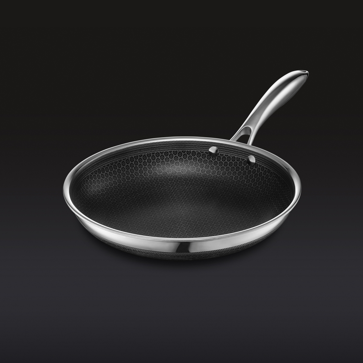 De Hexclad 26 cm koekenpan is de hybride pan voor wie het beste van twee werelden wil - de robuustheid van roestvrij staal, de lichtheid van antiaanbaklaag en de prestaties van gietijzer in één pan. Met het gepatenteerde oppervlak met hexagonaal patroon kunt u vlees of groenten dichtschroeien op hoog vuur, terwijl de antiaanbaklagen ervoor zorgen dat het voedsel gemakkelijk loslaat en schoonmaken een fluitje van een cent is.