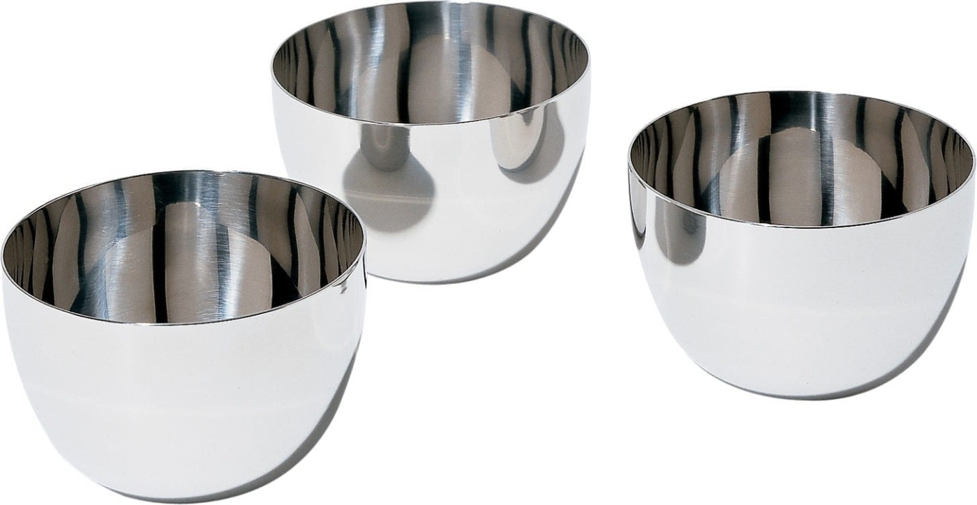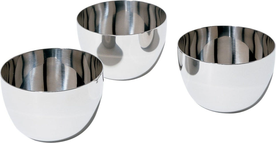 Set van drie kommen in hoogglans 18/10 staal. Hoogte 5,5 cm, Ø8,5 cm. Ontwerp: Stefano Giovannoni