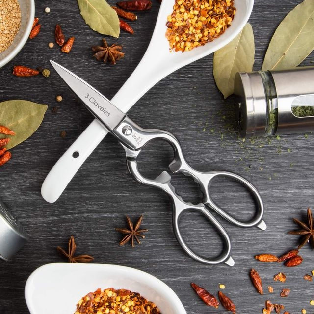 Deze multifunctionele keukenschaar van 3 Claveles sluit aan bij de realiteit van een professionele keuken waar flexibiliteit en precisie dagelijkse kost zijn. Hij is vervaardigd uit roestvrij staal en heeft een vorm en balans die hem even geschikt maken voor het knippen van verse kruiden voor garnering, het trimmen van vetlagen op vlees of het portioneren van pasta en groenten in het juiste formaat. De greep ligt stevig in de hand en maakt het mogelijk om langdurig te werken zonder verlies van controle of comfort.