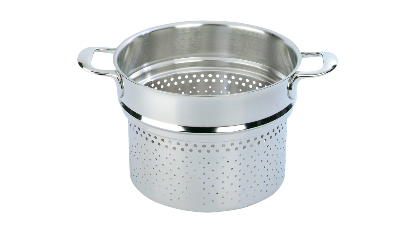 Pasta inzetstuk uit de Atlantis serie van het Belgische Demeyere, dat past in hun hoge kookpotten met een volume van 5 liter of meer.