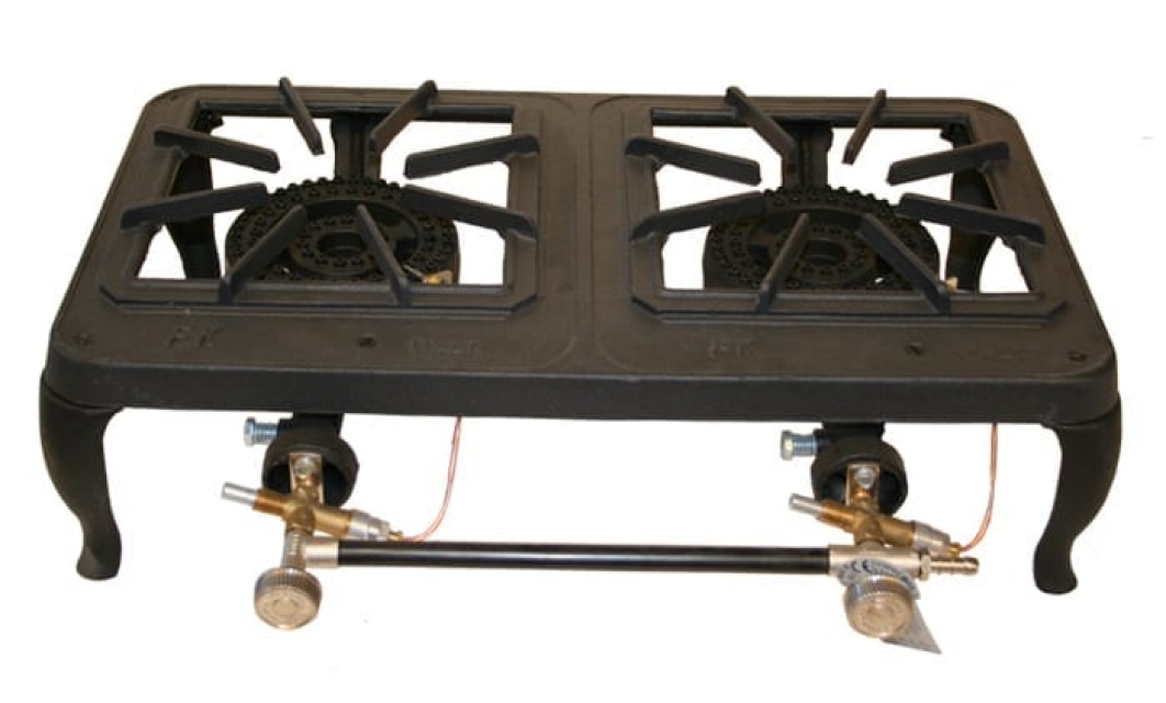 Kooktoestel met 2 branders van gietijzer. Voorzien van ontstekingszekering.