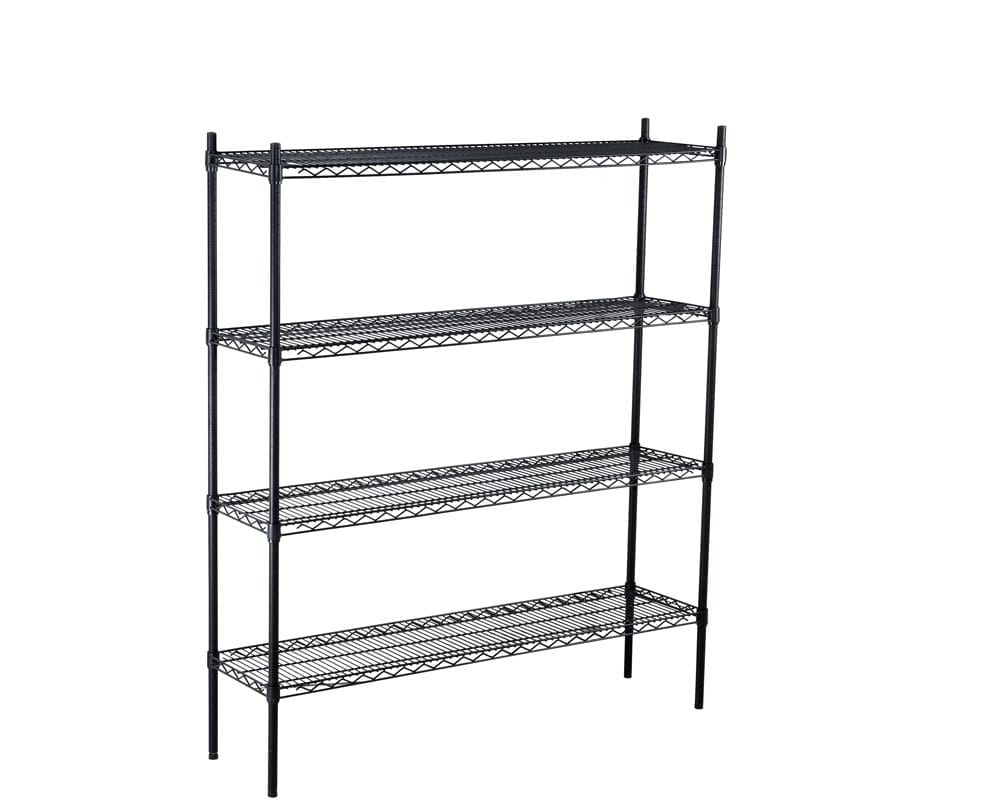 Stijlvolle keukenplank in een klassiek design, volledig in zwart gelakt staal met 4 legplanken. Eenvoudig te monteren, de planken kunnen traploos in hoogte worden versteld. Verstelbare poten.