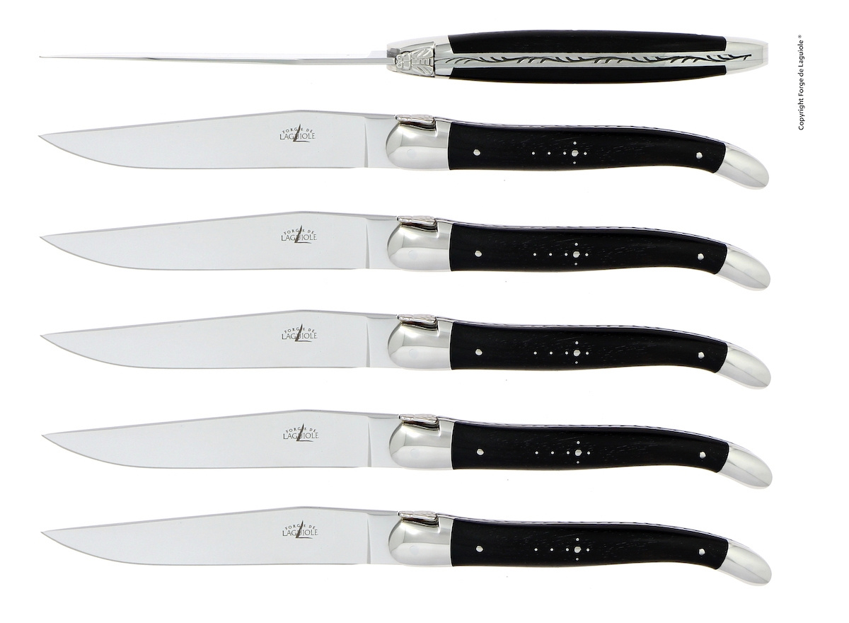 Zes messen, Ebbenhouten handvatten, gepolijst, Tradition - Forge de Laguiole