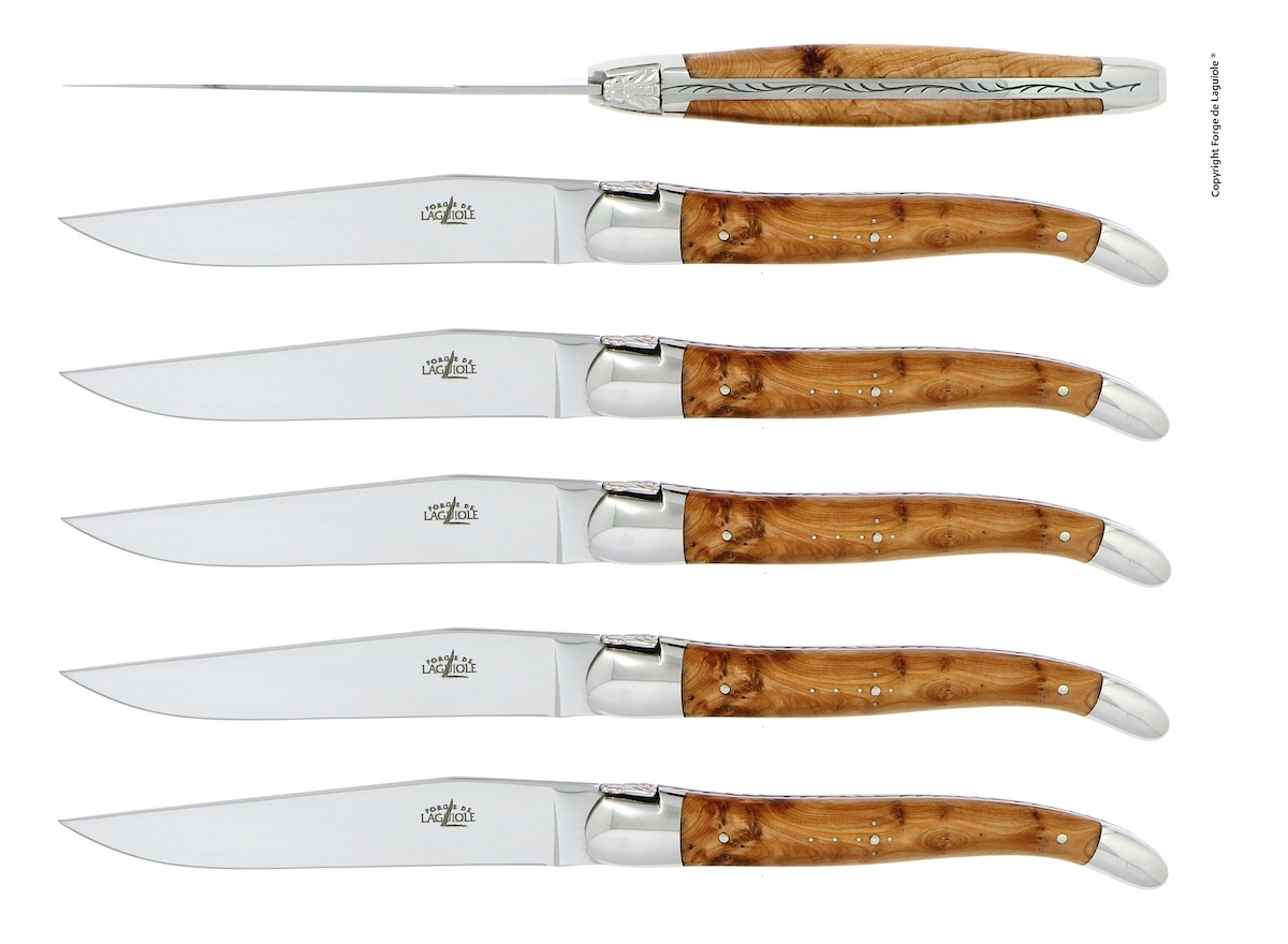 Set van zes eetmessen of steakmessen van Forge de Laguiole.