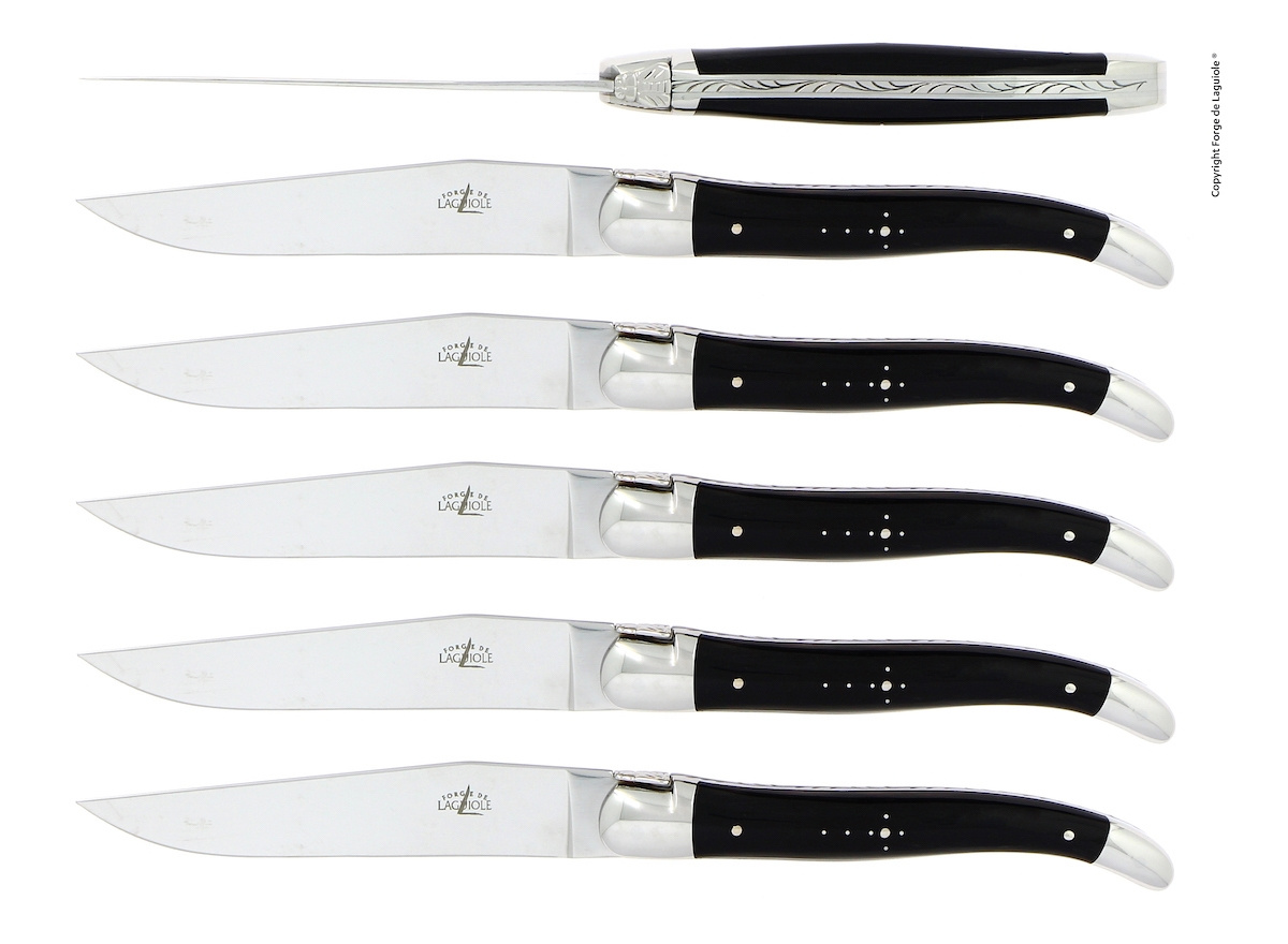 Set van zes eetmessen of steakmessen van Forge de Laguiole.