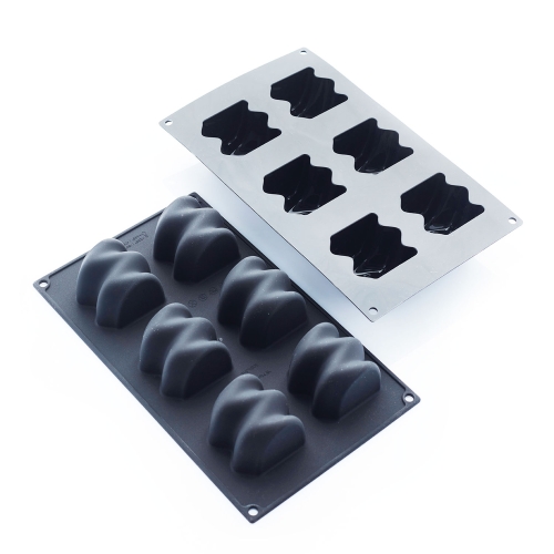 Uit Martellato's assortiment van zwarte siliconen vormpjes die wat stijlvoller, luxueuzer en moderner zijn, presenteren we Vibes die je de vorm van ritme geven (volgens de fabrikant). De vormpjes hebben een mooie ronding en maken gebakjes die superlekker zijn om ijs over te gieten. De gebakjes meten 58x62,5mm en zijn 45mm hoog (volume 111ml). De afmeting van de vorm is 297x176mm. Elke vorm heeft ruimte voor zes gebakjes en is bestand tegen temperaturen tussen -60°C en +230°C.
