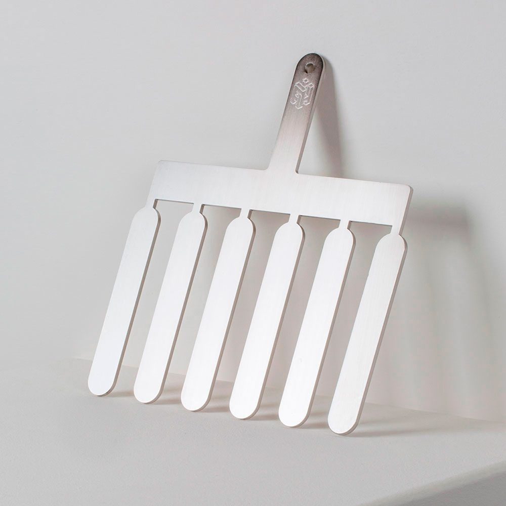 Een hulpmiddel om snel en gemakkelijk veel mooie chocoladedecoraties voor taarten en desserts te maken. Doop de kam in getempereerde chocolade en druk hem tegen een strook plastic of papier en u hebt uw prachtige tuile. Hiermee kunt u prachtige ovalen maken, zoals eclairs, en 6 stuks net zo snel als één.