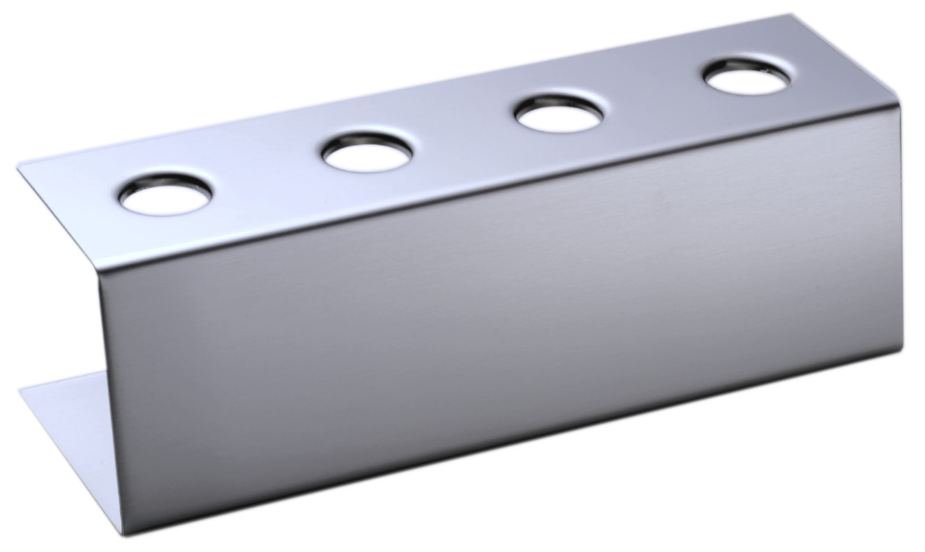 Houder voor ijswafels die zowel robuust als praktisch is. De houders worden in Duitsland vervaardigd uit roestvrij staal en zijn ontworpen om structuur en orde in de service te brengen. De gaten van Ø 26 mm houden de wafels rechtop en goed toegankelijk tijdens service, in ijsvitrines, op buffetten of bij evenementen.