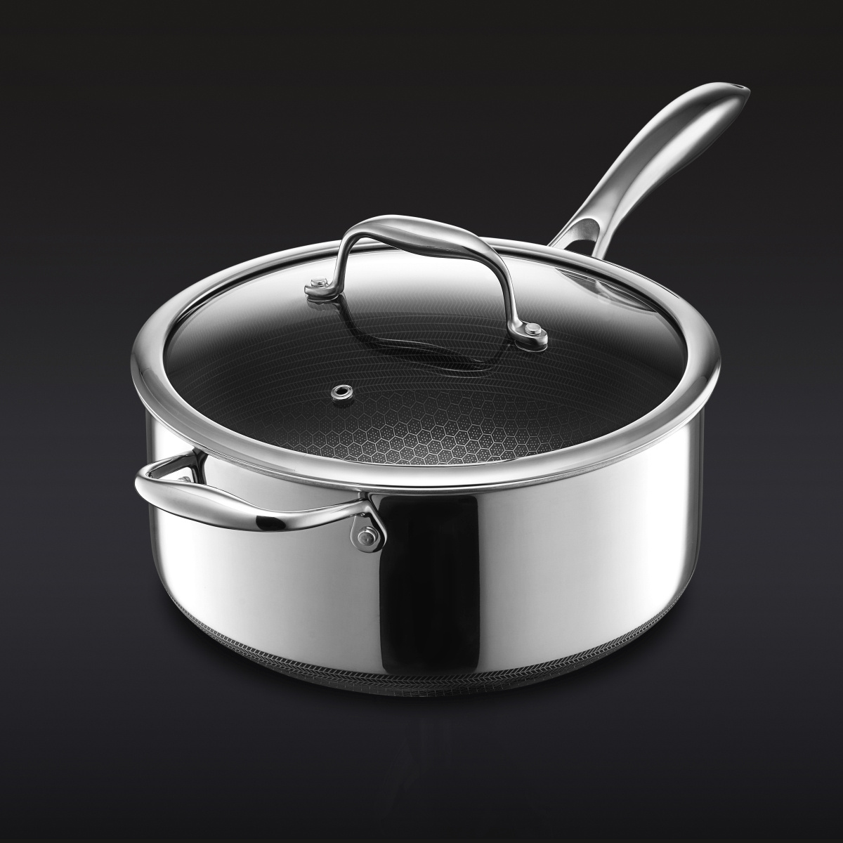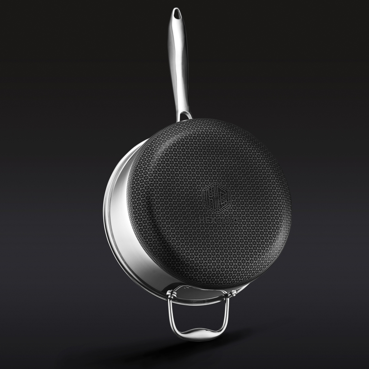 De Hexclad Hybrid braadpan met deksel van 4,7 liter is de braadpan die alles aankan, van langzaam gekookte en rijke stoofpotten tot brood bakken, soepen of grotere vleesgerechten - de perfecte allrounder voor in de keuken. Het ruime volume maakt het makkelijk om voor meerdere mensen te koken of royale porties te bereiden om later te bewaren.
