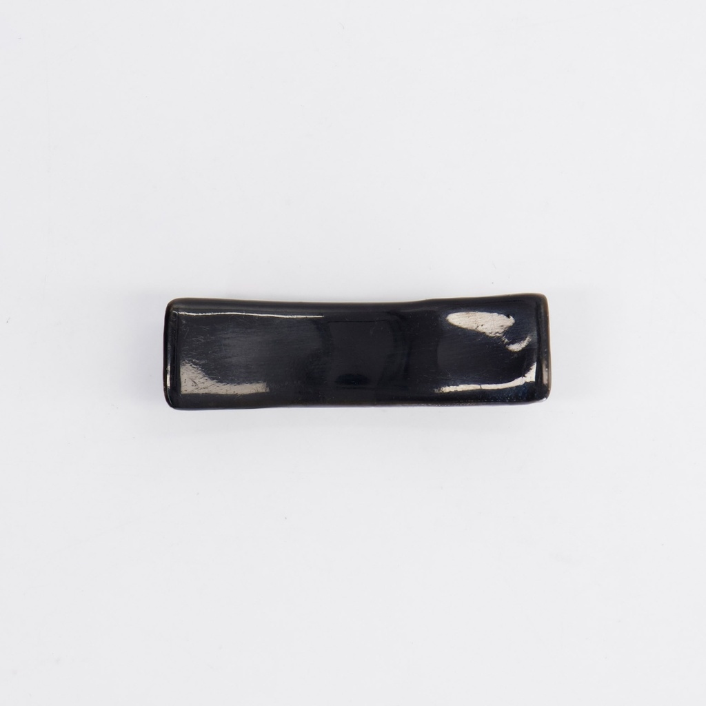 Dit model is gemaakt van keramiek met een diepzwart glazuur dat naar de randen toe bruin kleurt. De vorm is klassiek, licht gebogen als een boot of een halve maan, waardoor de stokjes stevig liggen zonder weg te rollen. De kleur werkt zowel als contrast met lichtgekleurd servies als een natuurlijk onderdeel van een donkerdere, meer ingetogen tafelsetting.