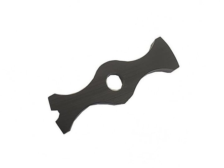 Een kunststof steunbeugel die de vijzel van vleesmolen nr. 12 stabiliseert bij het vullen van worstbeslag in worstenbuizen.