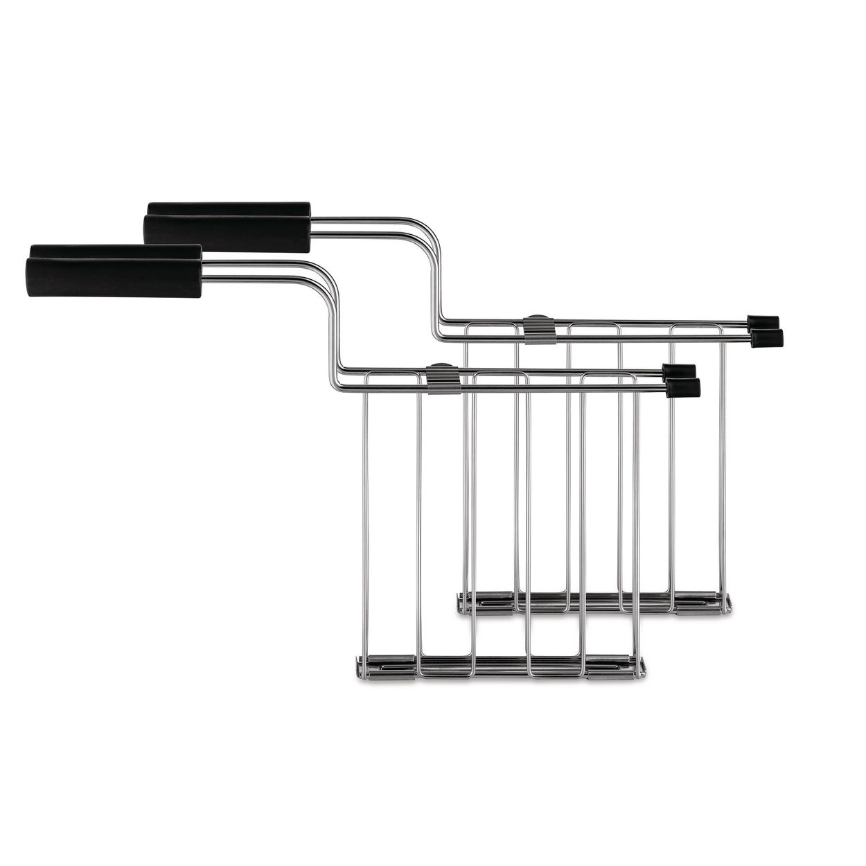 Een rooster voor de Alessi Toru toaster maakt van toast iets dat echt attent aanvoelt. Dankzij het roestvrijstalen rooster kun je het hele sneetje brood - of twee - in één keer optillen, zonder je vingertoppen te verbranden of met een pincet te moeten vissen. Het is ook handig voor het roosteren van dunner brood, cake of sneetjes die anders de neiging hebben om te blijven plakken. Een klein maar slim detail voor wie ontdekt heeft dat het leven te kort is voor brood dat vast blijft zitten in de broodrooster.