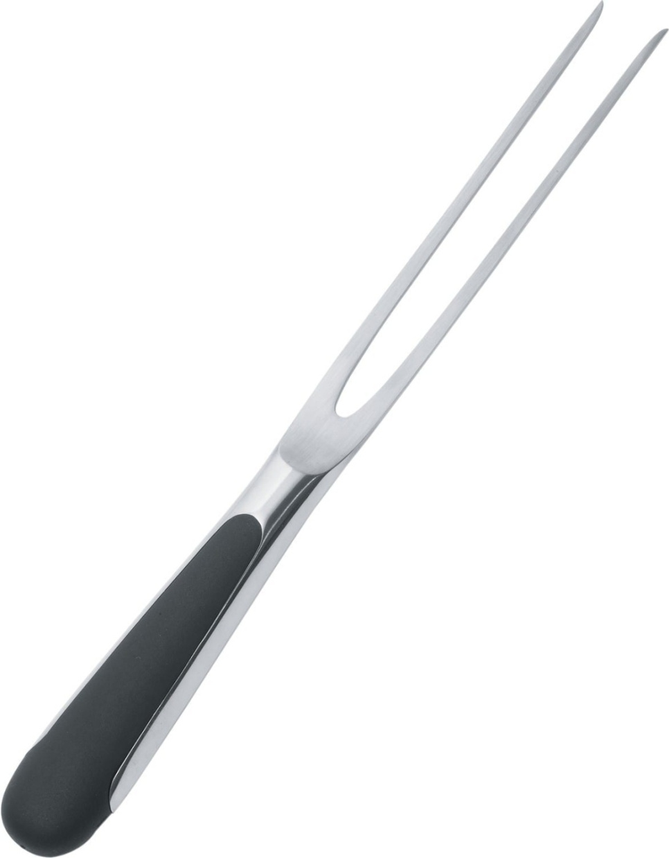 Koekenvork (lengte 30 cm) in 1.4116 staal met TPE handvat. Ontwerp: Stefano Giovannoni