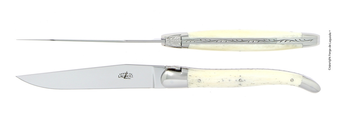 Twee messen, benen heft, gepolijst, Tradition - Forge de Laguiole