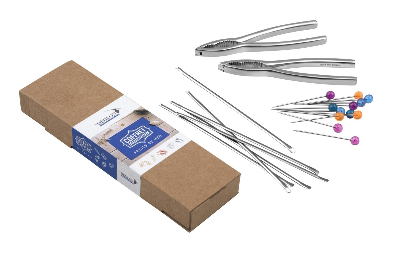 12 stuks naaldbestek om de kleinere schelpdieren mee te pikken, gepeld of ongepeld.