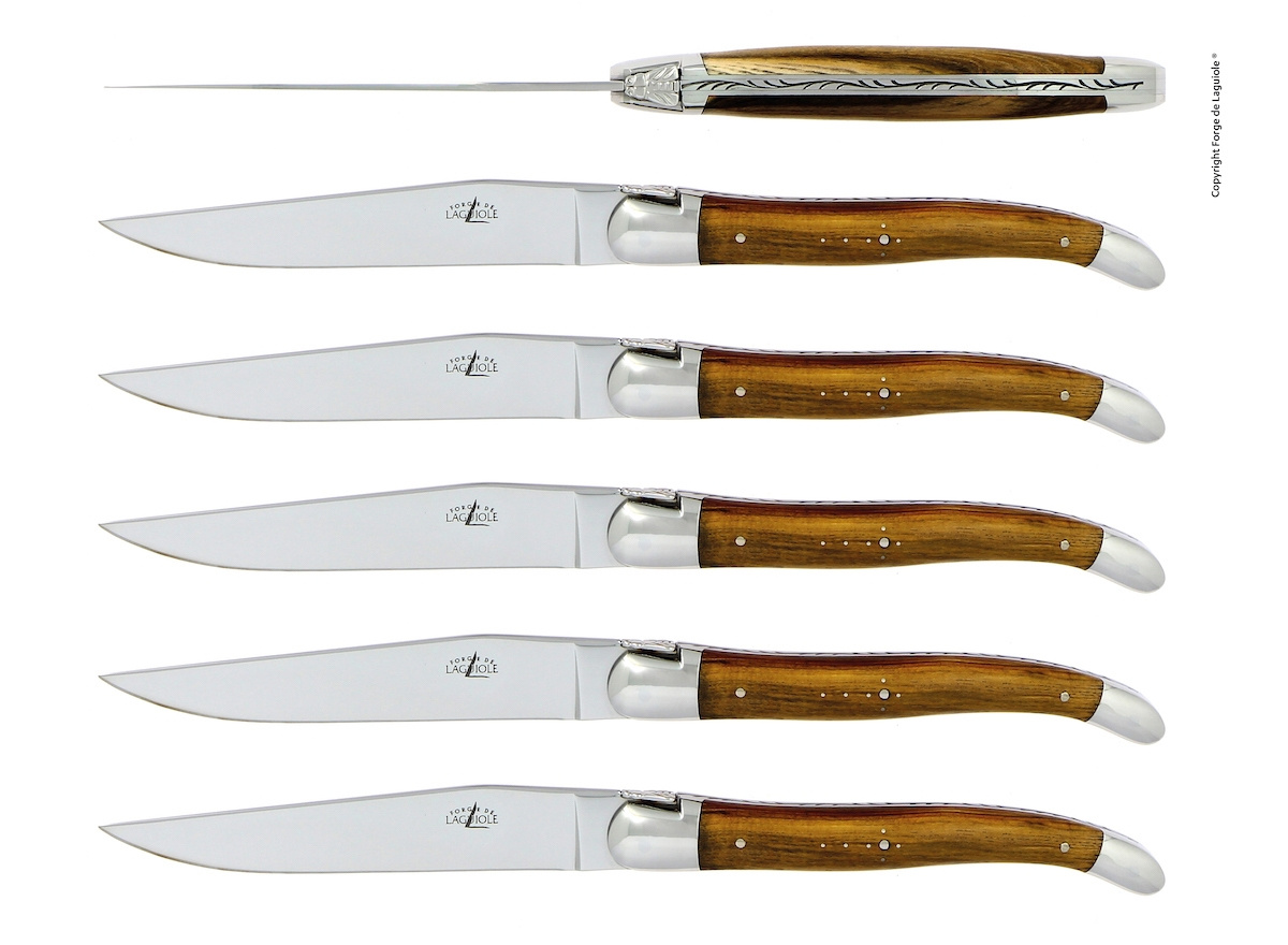 Set van zes eetmessen of steakmessen van Forge de Laguiole.