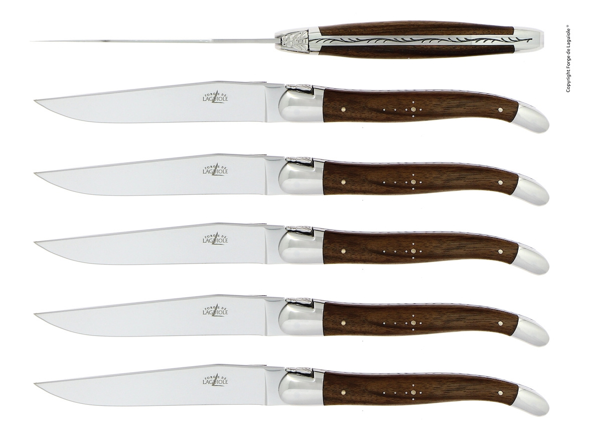 Zes messen, Walnoot handvat, gepolijst, Tradition - Forge de Laguiole