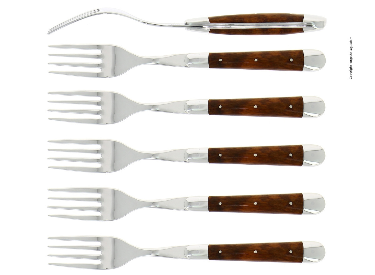 Zes vorken, Slangenhouten handvat, gepolijst, Tradition - Forge de Laguiole