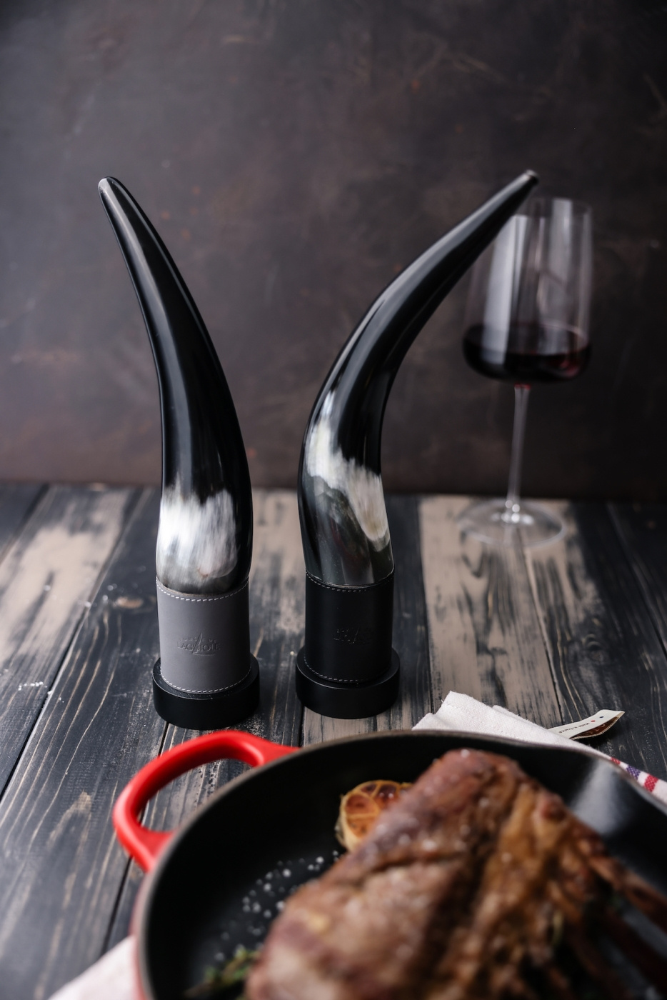Deze zoutmolen van Forge de Laguiole is een echt statement op de eettafel. De molen is gemaakt van een stuk ossenhoorn uit Aubrac in de omgeving van Laguiole. De hoorn is gepolijst en de verstelbare keramische molen van het Deense Crushgrind is bekleed met grijs leer. Een echt majestueus stuk op elke tafel, maar we kunnen ook toegeven dat het niet voor iedereen is weggelegd.